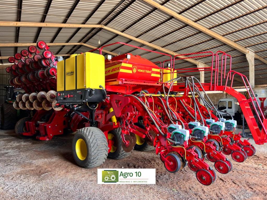 •Plantadeira auto transportável •Modelo Center Box •Marca Vence Tudo •Ano 2023 •Linha/esp 30X45 •Sistema a vaco •Distribuição Selenium •Desligamento Linha Linha •Pulverizador de sulco na linha •Marca Safra Max